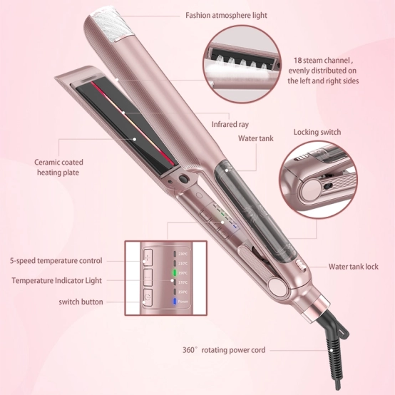 Steam hair straighteners let out steady vapor puffs. These come from vents by the hot plates. When you use it on hair, the steam sinks into the outer layer. It locks in key moisture. At the same time, it reshapes bonds inside the strands. This pair of actions gives sleek looks. It does not hurt the hair’s base strength.